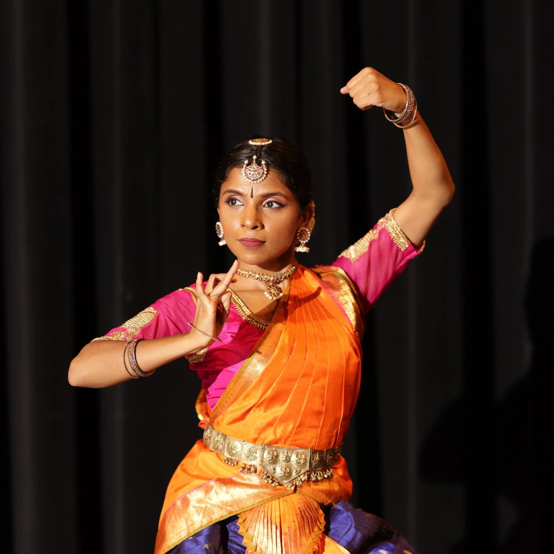 Recognised for creating work that focuses on two distinct dance styles, Bharatanatyam and Odissi. Her graceful movements and strong expressional presentation as a classical dancer allows for a fluid transition from storytelling in Hindu Mythology to storytelling in today's societal issues. Currently her work gravitates towards examining the influence these two dance styles impose on each other and shedding light on the union and fusion of these styles, an area to be explored.